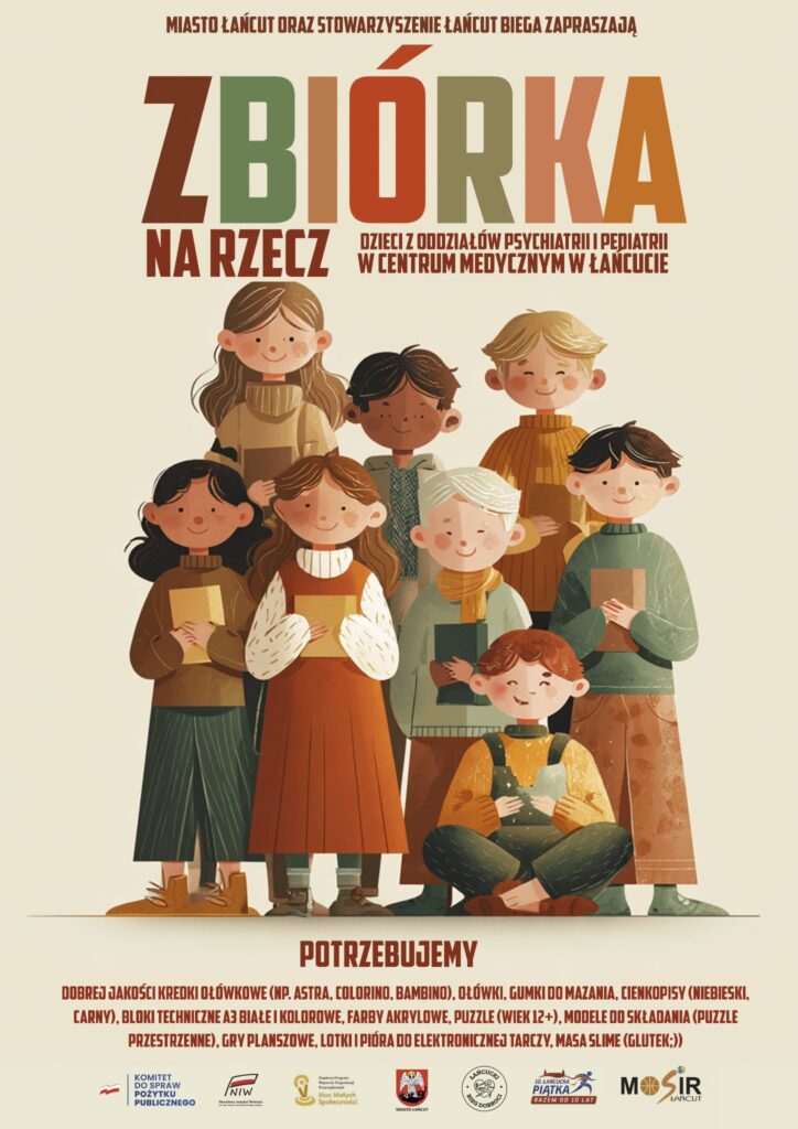 W ramach akcji „Łańcucki Bieg Dobroci – Biegniemy, by pomagać”, której partnerem jest Miasto Łańcut, od 7 do 26 listopada 2025 roku w szkołach na terenie miasta prowadzona będzie zbiórka materiałów papierniczych i gier edukacyjnych.