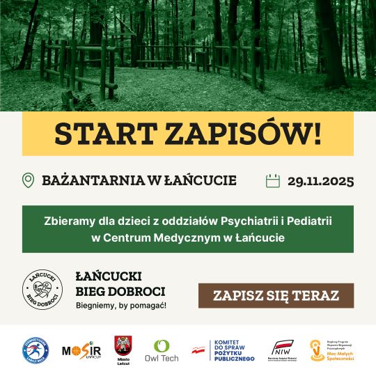 29 listopada zaplanowano również Łańcucki Bieg Dobroci alejkami Bażantarnii, wyjątkowe wydarzenie, które łączy sport, integrację i chęć niesienia pomocy. To już trzecia edycja, podczas której uczestnicy biegną, aby wesprzeć dzieci z oddziałów Psychiatrii i Pediatrii w Centrum Medycznym w Łańcucie.