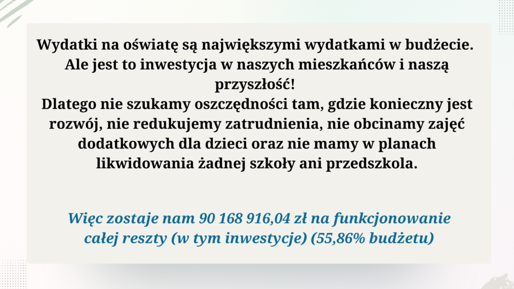 Po zabezpieczeniu środków na oświatę pozostaje: