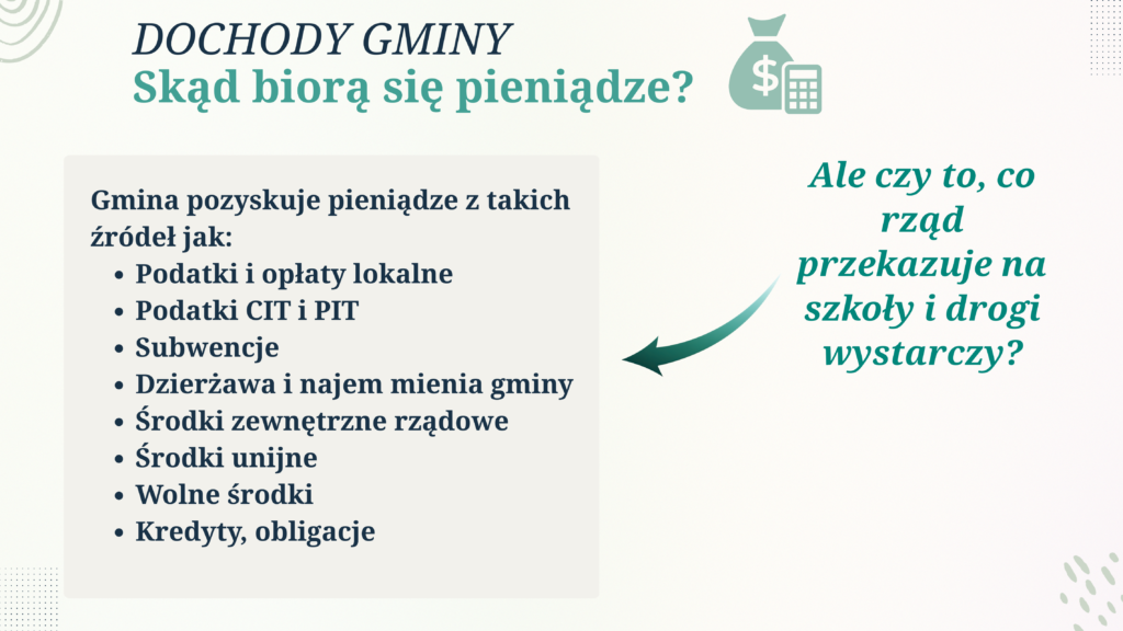 Jednocześnie – jak wskazano w materiałach – pojawia się pytanie, czy środki przekazywane z budżetu państwa na realizację zadań takich jak edukacja czy infrastruktura drogowa są wystarczające w stosunku do realnych potrzeb samorządu.