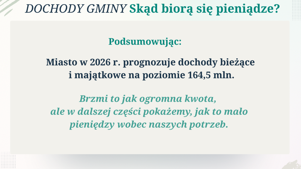 Miasto w 2026 roku prognozuje dochody bieżące i majątkowe na poziomie 164,5 mln zł.