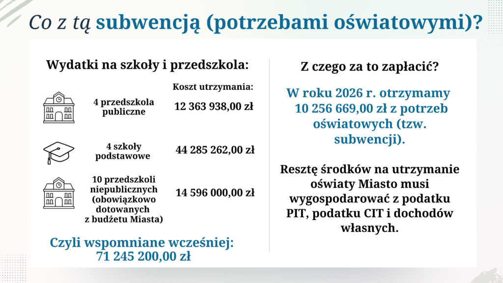 W 2026 roku miasto otrzyma z tzw. potrzeb oświatowych