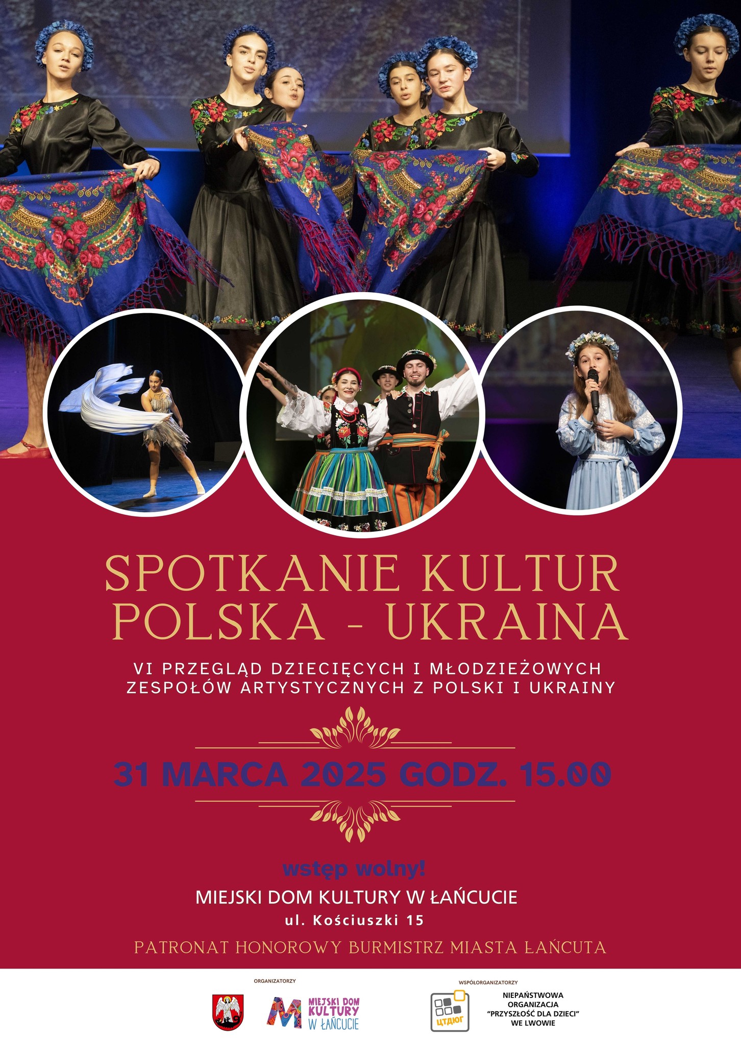 31 marca 2025 roku o godzinie 15:00 w Miejskim Domu Kultury w Łańcucie odbędzie się VI Przegląd Dziecięcych i Młodzieżowych Zespołów Artystycznych z Polski i Ukrainy – „Spotkanie Kultur Polska – Ukraina”.