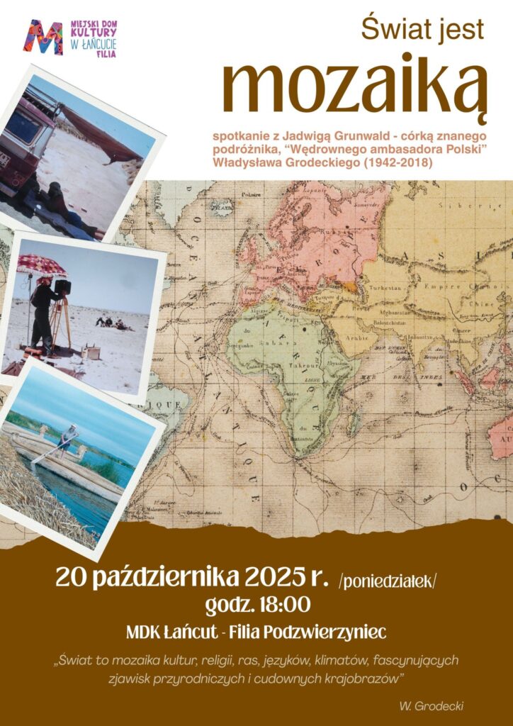 Już 20 października o godz. 18:00 w Filii Miejskiego Domu Kultury na Podzwierzyńcu odbędzie się spotkanie z Jadwigą Grunwald – córką znanego podróżnika i dokumentalisty Władysława Grodeckiego, którego historia pokazuje, że na spełnianie marzeń nigdy nie jest za późno.