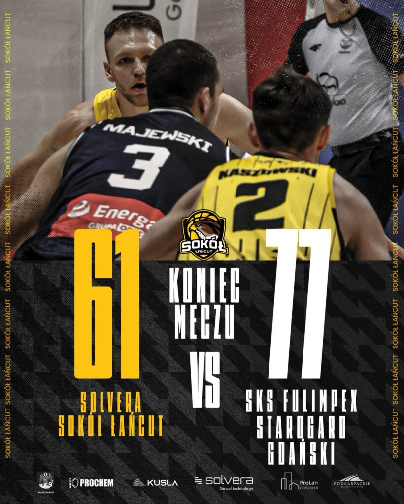 Nieco mniej powodów do radości mieli w ten weekend kibice męskiego Sokoła Łańcut. W meczu 5. kolejki Pekao S.A. 1 Ligi Mężczyzn podopieczni trenera mierzyli się z drużyną Kociewskie Diabły. Pomimo ambitnej gry i dobrej pierwszej połowy, spotkanie zakończyło się porażką Sokoła 61:77.